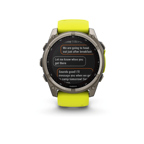 For serious athletes and adventurers who want to push beyond their limits, this premium multisport GPS smartwatch is built to perform and styled for larger wrists — with advanced strength training features, dive capability, an internal speaker and mic for voice features, a built-in LED flashlight and up to 48 days of battery life with the Power Sapphire™ solar charging lens1.